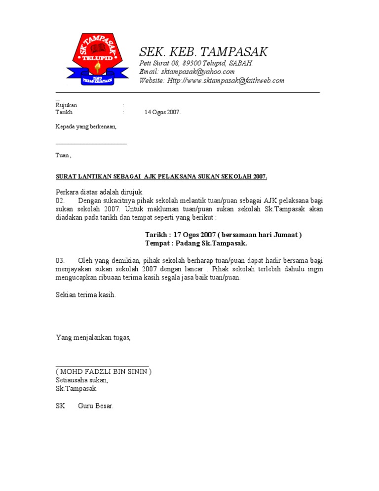 Contoh Surat Lantikan Ajk Pibg